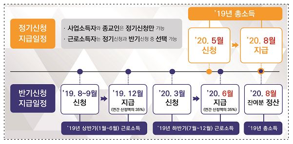 그래서 작년 2019년에 2020년 근로 장려금 반기 신청을 했습니다.