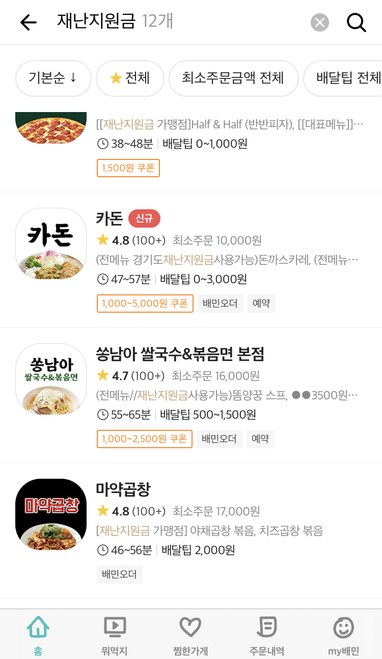아쉬운 부분은 있지만 배달의 민족으로도 재난지원금을 알차게 사용할 수 있으니 다행입니다.