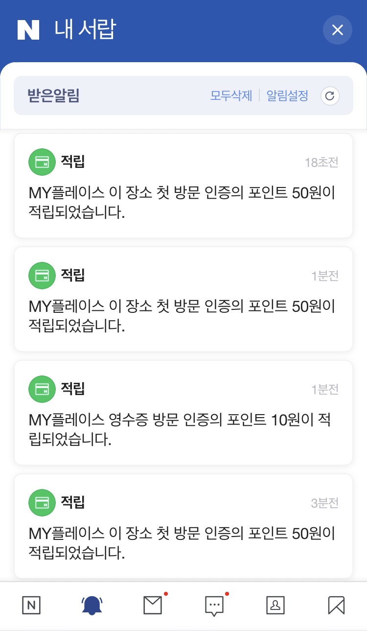 이곳처럼 첫 방문인 경우 50원이 적립됩니다. 10원 받다가 50원 받으면 얼마나 기분이 좋게요 :)