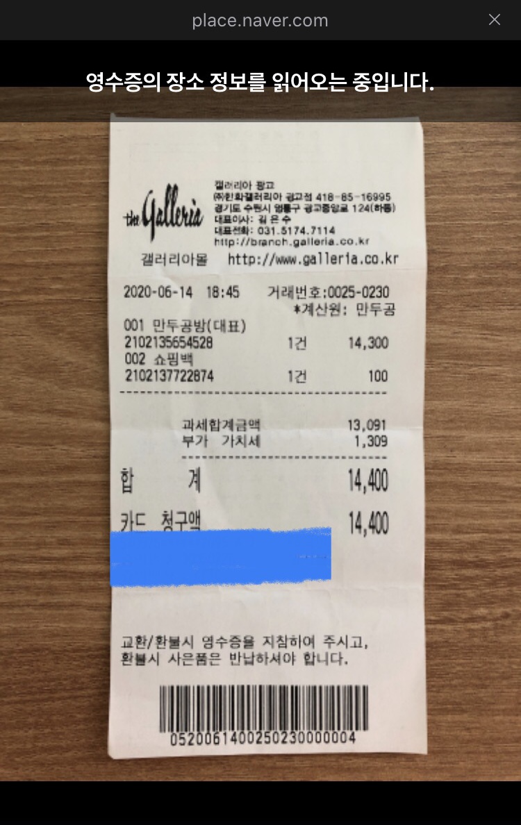 경험상 영수증 전체가 나올 필요는 없고요