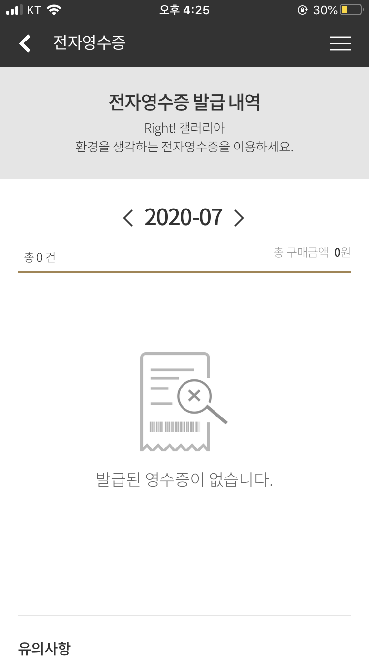 전자 영수증 발급 내역은 어플에서 이렇게 간단하게 확인할 수 있답니다. 저 같은 경우 방금 등록을 마쳤기 때문에 확인되는 영수증은 아직 없어요. 다음부터는 여기서 발급된 영수증으로 포인트 적립도 하고 가계부도 써보도록 하겠습니다.