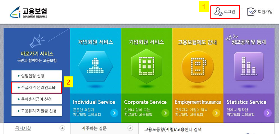 이제 고용복지센터에 방문 전에 반드시 워크넷 구직신청과 온라인 교육을 이수하셔야 합니다. 온라인 교육의 경우 미리 듣지 않고 센터에 방문해서 강의를 들어도 되지만 인터넷으로 미리 하고 가시면 훨씬 빨리 업무를 끝낼 수 있습니다. 아래 과정을 따라서 온라인으로 미리 수강하시는 것을 추천드립니다.