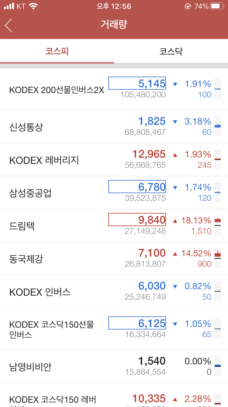 거래량 1000만 주 이상 되는 종목을 확인하고 있어요