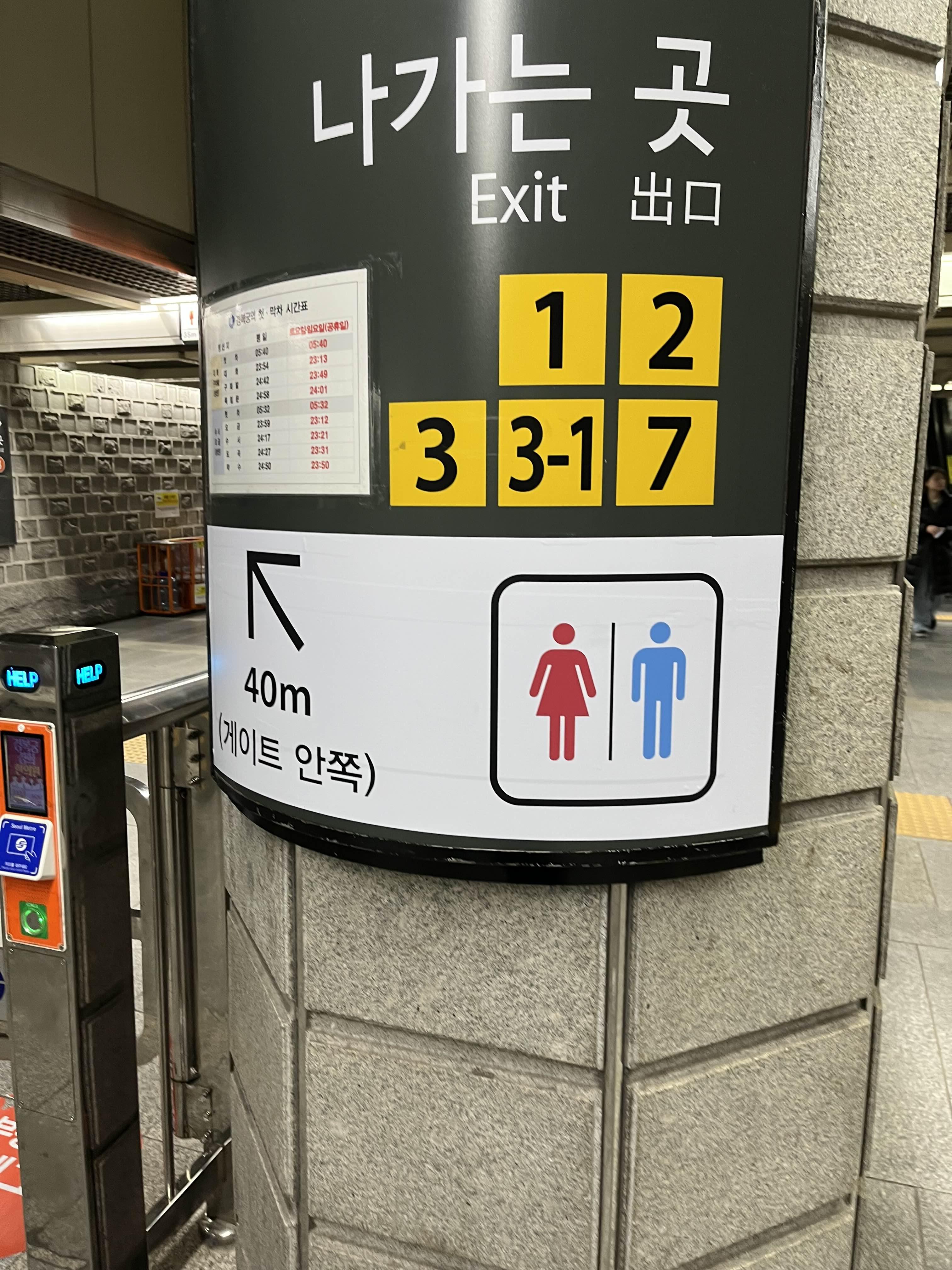 특히 경복궁역은 화장실이 지하철 게이트 안에 있기 때문에 더 찾기 어려울 수 있다.